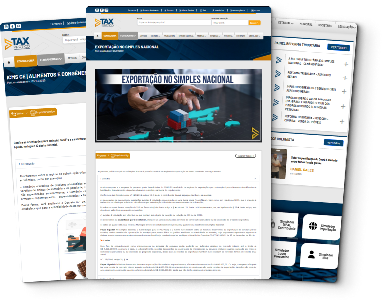 A consultoria tributária compreende a interpretação e abordagem prática da legislação estadual, federal e municipal aplicada à Pessoa Jurídica, haja vista a sua natureza complexa. Acesse “Consultoria” no menu, envie sua dúvida e interaja com nossos consultores por até 5 dias corridos.
