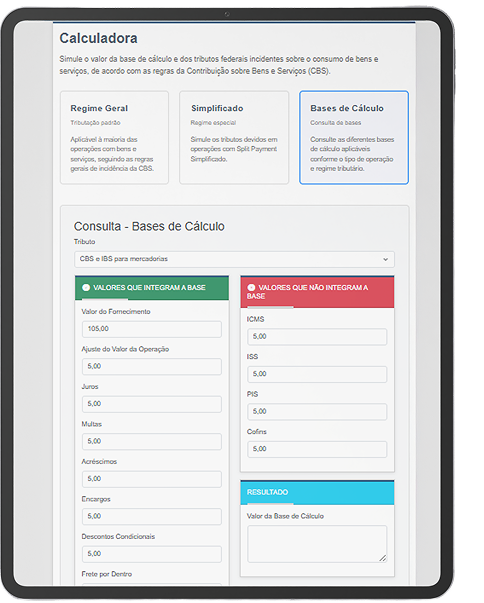 A Calculadora da Reforma é uma ferramenta gratuita que mostra, de forma clara e prática, o valor da base de cálculo e dos tributos